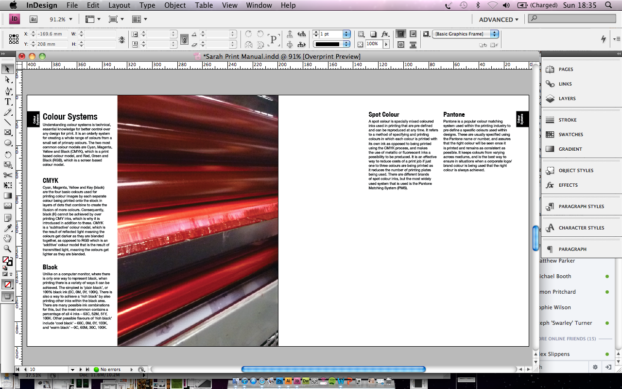 I then experimented with how I could have the copy across the pages as it doesn't necessarily matter what order that they go in as such as they don't follow on from each other, just need to make sure I keep the 'intro' as the intro followed by the CMYK information being the next to be read.