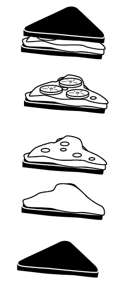 Then I got the idea to try something a bit different with it. I figured because they offer you to be able to make your own sandwich with the fillings of your own choice, I could play on this with the icon and have each of the different stages of this - so bread, then meat, then cheese, then salad. Then the end symbol would have the bread on top again to make the actual sandwich symbol.